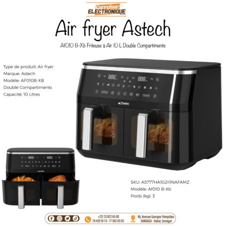 Air fryer Astech 10L avec double compartiment et cuisson simultanée.