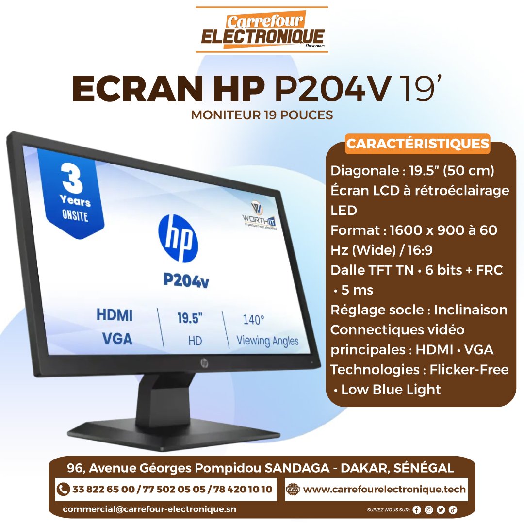 Moniteur HP 19′ Diagonale : 19.5″ (50 cm) Écran LCD à rétroéclairage LED Format : 1600 x 900 à 60 Hz (Wide) / 16:9 Dalle TFT TN • 6 bits + FRC • 5 ms Réglage socle : Inclinaison Connectiques vidéo principales : HDMI • VGA Technologies : Flicker-Free • Low Blue Light
