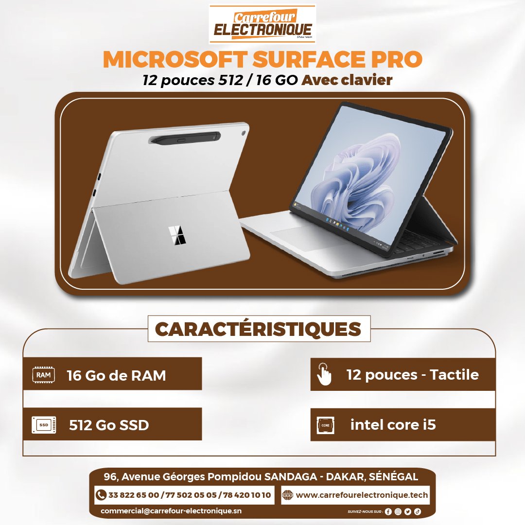 Soyez le premier à laisser votre avis sur “Microsoft Surface Pro 12 x plus 512 / 16 GO Avec clavier”